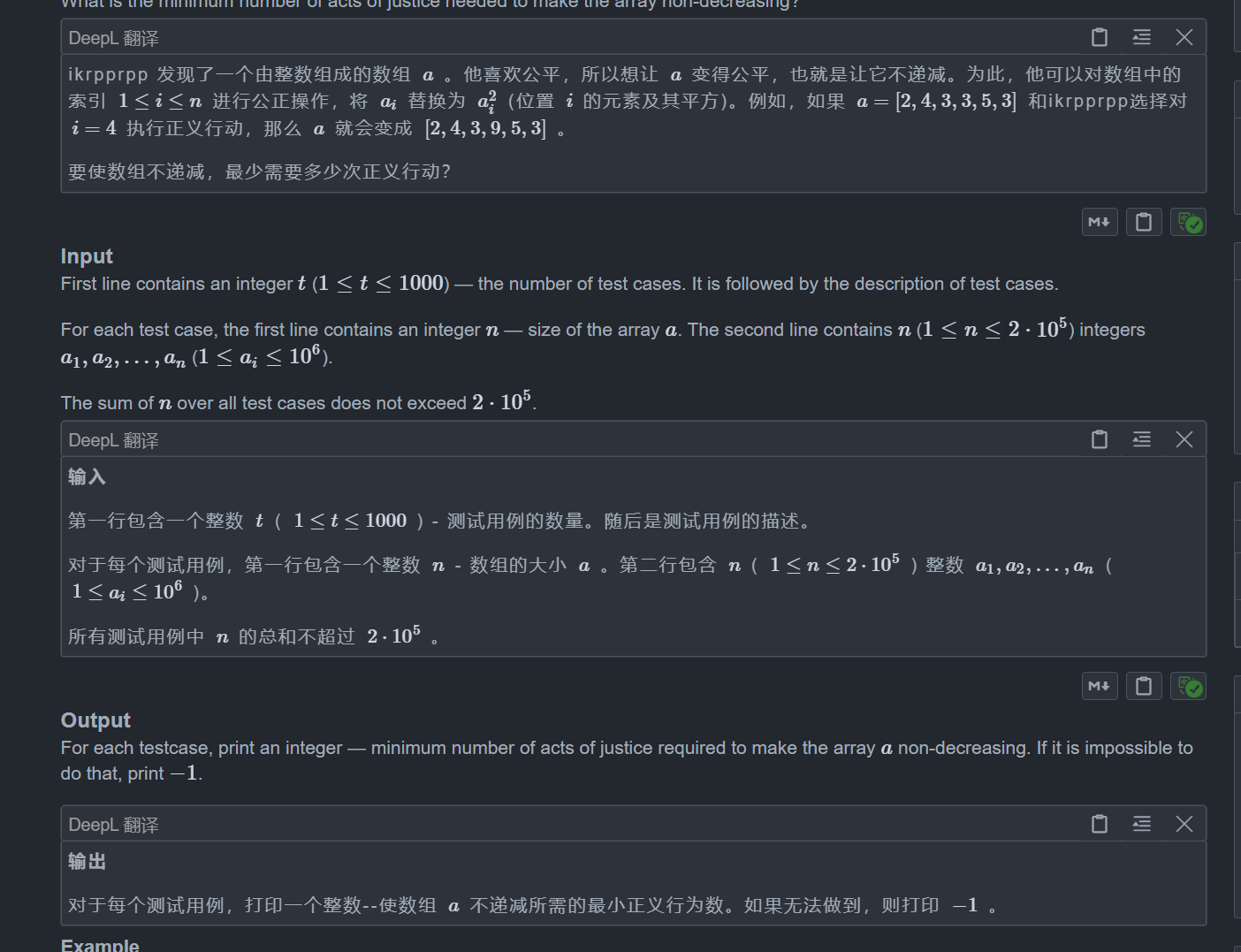 首先我们看无解的情况,显然就是当 1 前有个数比 1 大时,因为 1 的平方还是 1 ,所以无论操作多少次,我们都无法改变大小关系